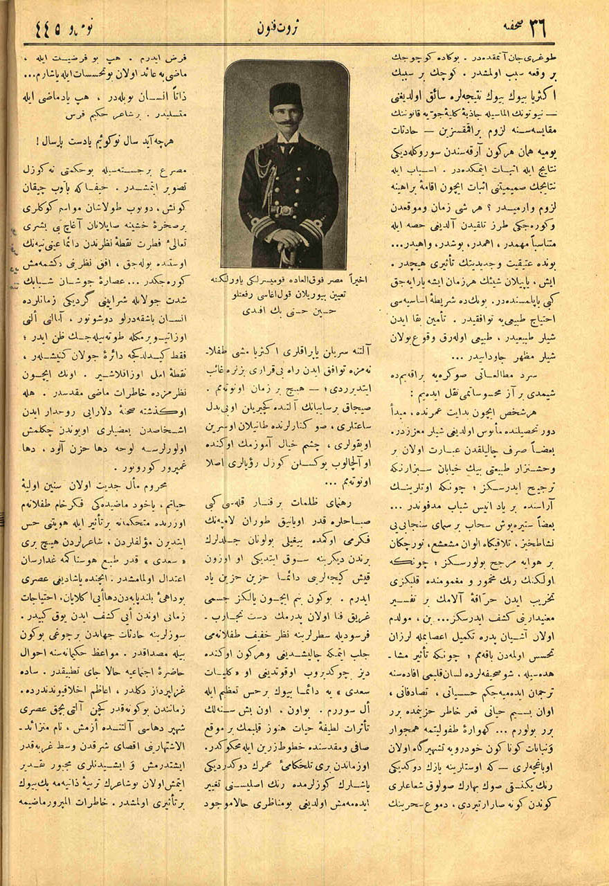Ahiren Mısır Fevkalade Komiserliği Yaverliğine Tayin Buyurulan Kolağası Refetlü Hüseyin Hüsnü Beyefendi