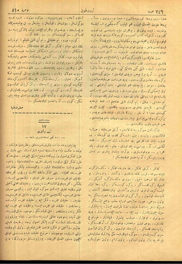 Pozitivizm hadd-i zatında vukuf-ı beşere müteallik bir nazariyeden ibarettir. Bunun “hikmet-i müsbite” ismiyle tesmiye olunmasının sebebi müsbet bir tarz-ı tefekkürü usul ve tertip tahtına vaz ettiği içindir. Malumfur ki tarz-ı tefekkür iki türlüdür: Ya sırf nazarî =speculatif yahut maddi ve müspet=positif olur. Birincisinde yalnız hatırat-ı mücerredenin tahliline yani tefekkür ve taakkule ehemmiyet verilip, tecrübenin hafaya-yı gayr-ı mücerredesinden sarf-ı nazar edilir. İkincisi ise bilakis tecrübeye fevkalade ehemmiyet verip bir hakikatin sıhhatini ancak onu vakayie tatbik ettikten sonra kabul eder. Birincisi sırf hakayık-ı mücerredeyi, ikincisi hakayık-ı mücerredeyi de, hakaik-i gayr-ı mücerredeyi de havidir. Hakikat-i mücerrede, fikir ile hakikat-i mücerrede arasında bir muadeledir. Hakikat-i gayr-ı mücerrede ise bir hakikat-i gayr-i mücerrede ile fikir beyninde bir muadeledir. Şıkk-ı evvelde hüküm bir mevcud-ı hayalî üzerine, şıkk-ı sanide bir mevcud-ı hakiki üzerine müstenittir. İşte pozitivizm felsefesinin iddiasına göre yalnız usul-i tarassut, bir tabiat-ı fenniyeyi haizdir ve ancak o fikre kanaat-bahş olabilir. Vüsuk-ı tam vakayie müpteni şeylerde mevcuttur. Her nevi hakikat-i fenniyeye destres olmak için düsturü’l-amel tecrübedir. Pozitivistler diyorlar ki: Biz tecrübenin yani hadisatın haricinde hiçbir şeyi suret-i katiyede bilemeyiz.