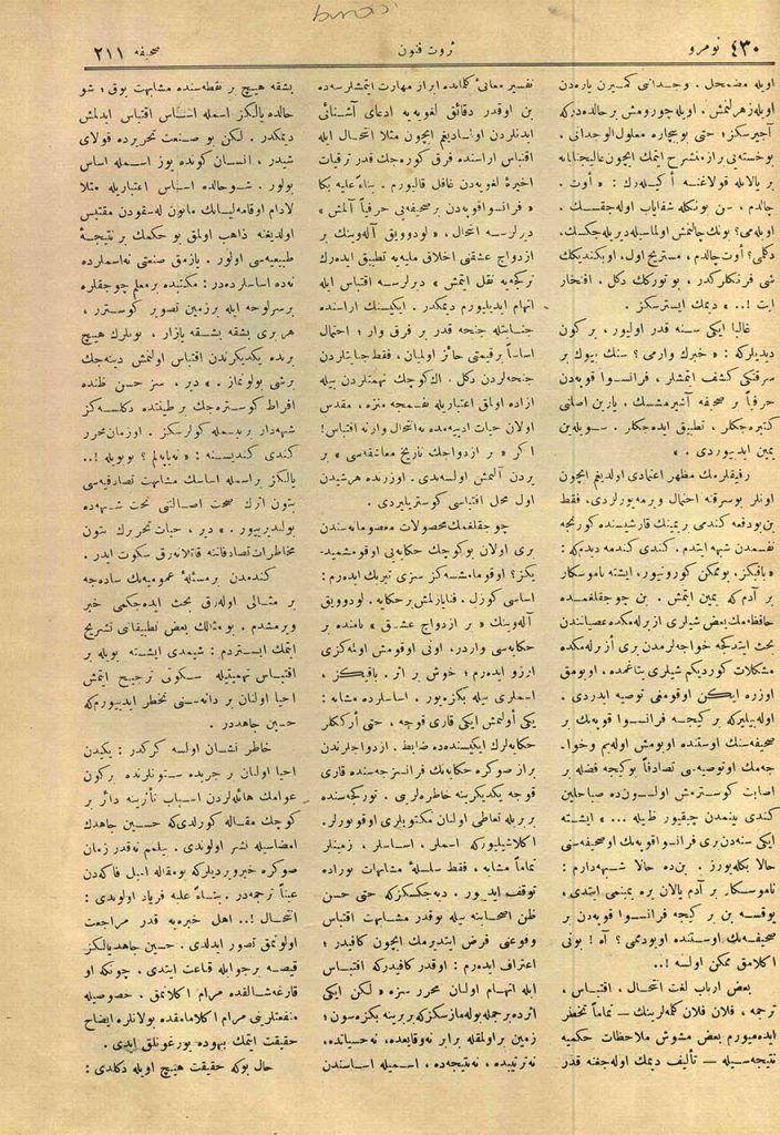 Bahsedilecek şeylerin arasında bugün kalemimin ucuna dolaşmak isteyen nazik bir mesele var ki beni sevk edebileceği hatır-nak vadileri düşündükçe bahsetmekten feragat arzuları hissediyorum. İşte şu iki satırlık mukaddime-i ihtiyatiyeyi yazarken bile hala mütereddidim: Bahsetmeli mi, etmemeli mi? Bu kadar tereddütle yazmaya başladıktan sonra şu önümde duran beyaz kâğıtları hiçbir şeyden bahsetmiş olmaksızın doldurmak da pek mümkündür. Keşke öyle olsa. Bu suretle melhuz olan tehlikelerden kurtulmuş olurdum. Ezcümle beni en ziyade korkutan bir tanesinden: Kendimden bahsetmek. Ne kadar hatır-nak değil mi? İnsanın kendisinden bahsetmesinde daima büyük bir tehlike vardır. Fakat yalnız bir şey bana biraz cesaret veriyor: Kendimden bahsetmek bir parça da bir hiçten bahsetmek demek değil midir? (…)