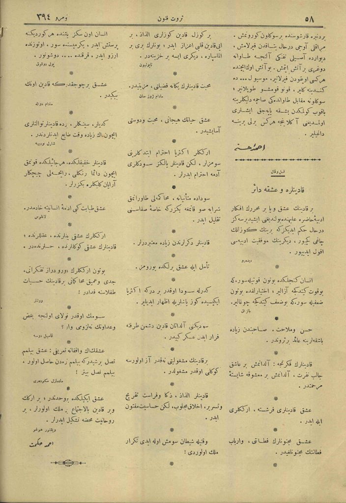 Bir kadının aşk veya bir muharririn efkâr-ı edebiye-i hazıra aleyhinde bulunduğunu işitirseniz derhâl hükmediniz ki birinin güzellik çağı geçiyor, diğerinin muvaffakiyet-i edebiyesi uful ediyordur.