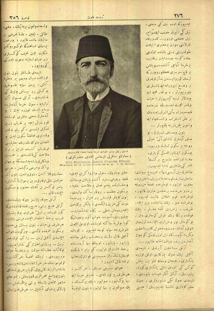 Kudema-yı Rical-i Devlet-i Aliye’den Hazine-i Hassa-i Şahane Nazır-ı Cedidi Saadetlü Sakızlı Ohannes Efendi Hazretleri