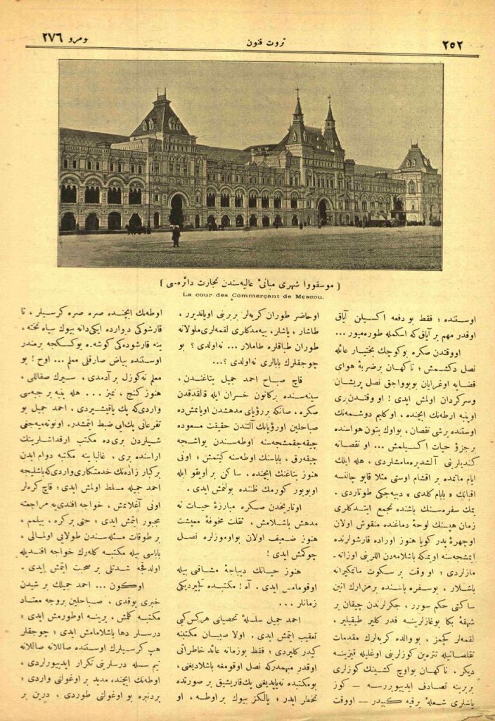 Servet-i Fünûn’un Romanı: Mai ve Siyah Yazan: Halit Ziya [Uşaklıgil] Kategoriler: Edebiyat Alt Kategoriler: Roman/Telif Kurmaca Anahtar Kelimeler: Tefrika Muharriri: Uşşakizade Halit Ziya [273 numaradan beri mabad] Moskova Şehri Mebani-i Aliyesinden Ticaret Dairesi Yazan: Servet-i Fünûn Kategoriler: Görsellik/Güncel Haber Alt Kategoriler: Çizim/Dünyadan Haber Anahtar Kelimeler: Bina/Resimlerimiz/Ticaret