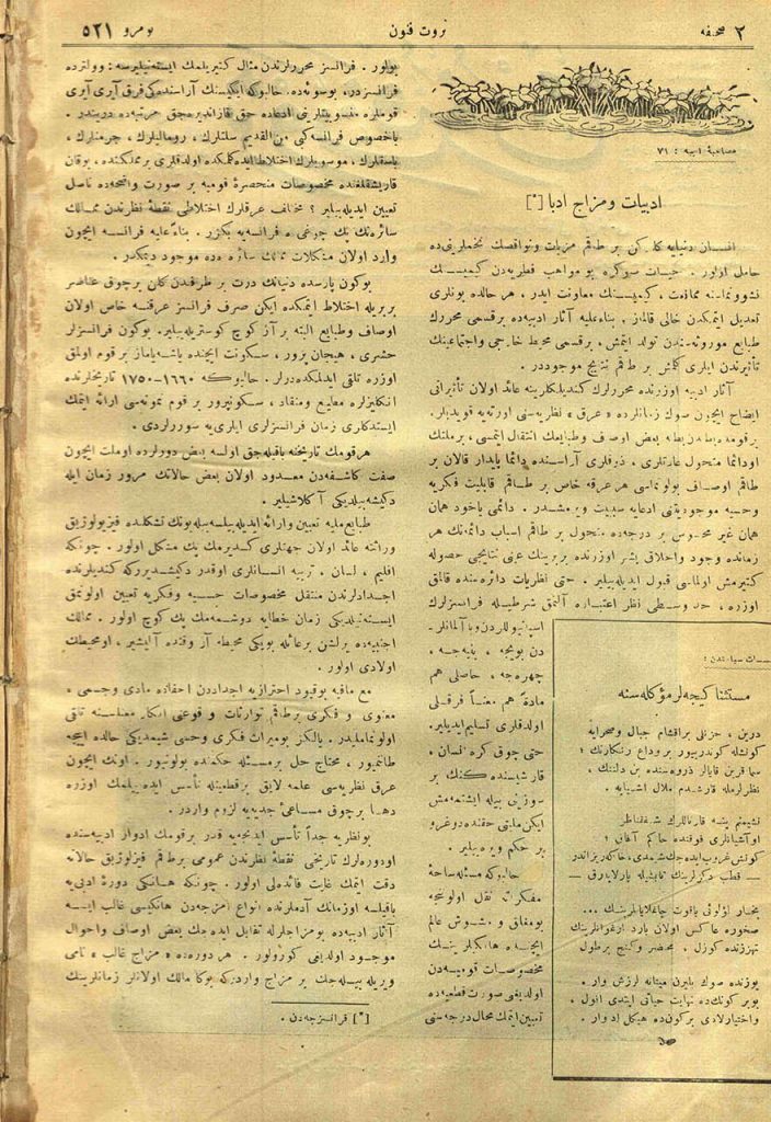 İnsan dünyaya gelirken birtakım meziyat ve nevakısın tohumlarını da hamil olur. Hayat sonra bu mevahib-i fıtriyeden kimisinin neşvünemasına mümanaat, kimisinin muavenet eder, herhâlde bunları tadil etmekten hali kalmaz. Binaenaleyh asar-ı edebiyede bir kısmı muharririn tabayi-i mevrusesinden tevellüt etmiş, bir kısmı muhit-i harici ve içtimainin tesirinden ileri gelmiş birtakım netayic mevcuttur.
