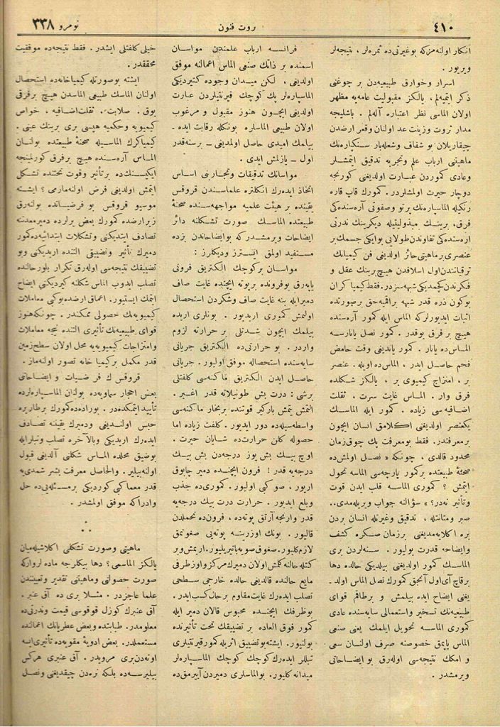 Elmas- Elmasın sahne-i tabiatta suret-i teşekkülü – Suni elmaspareler – Tabiat ve sanat – Ak anber – Ak anberin rayiha-ı kerihe ve latifesi – Ak anberin mikropları – Londra’nın atsız araba şirketi – Elektrik muharrikleri ve makineli arabalar