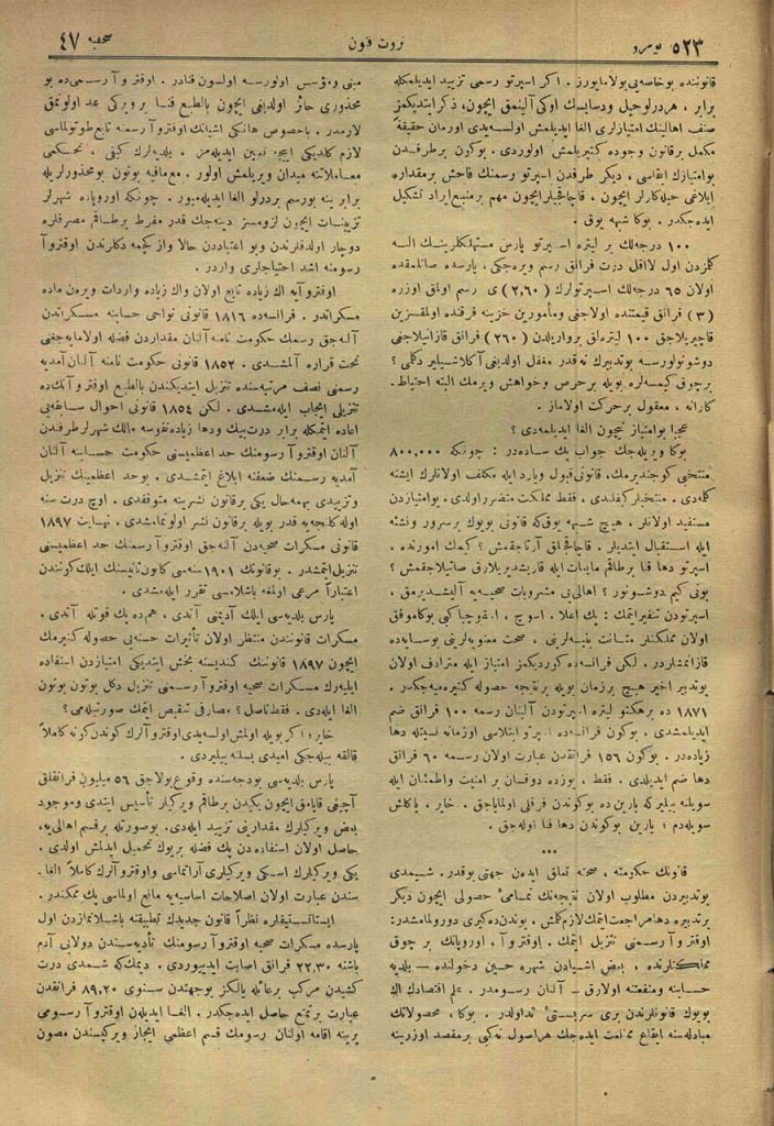 Fransa meclis-i mebusanının son devre-i içtimaını işgal eden en mühim mesele-i maliye müskirat rüsumunun tenkisine dair olan kanunun kabulüdür. Bu meselenin bir taraftan ahalinin hıfzıssıhhasına, belediyeler için bir madde-i hayatiye teşkil eden oktruva rüsumuna, diğer taraftan doğrudan doğruya hükûmet varidatı meyanında bulunan istihlakât vergilerine taalluk eylediği düşünülürse icraat-ı ahirenin, bazılarının zannettikleri gibi, na-be-hengâm değil belki geç vuku bulduğuna itimat etmek lazım gelir. Şu birkaç aylık iktisadi, içtimai, mali resail-i mevkute sayfalarında, ceraid-i yevmiye sütunlarında bu mesele fevkalade ehemmiyetle telakki edilmiş, bu bapta pek alimane, pek vakıfane mütalaalar serd olunmuştur. Böyle calib-i dikkat bir mesele-i maliye hakkında bizde de birkaç sayfa yazı yazmak pek beyhude olmaz sanırım. Bunları bilmeye, öğrenmeye bizim de ihtiyacımız olduğu inkâr edilemez değil mi?..