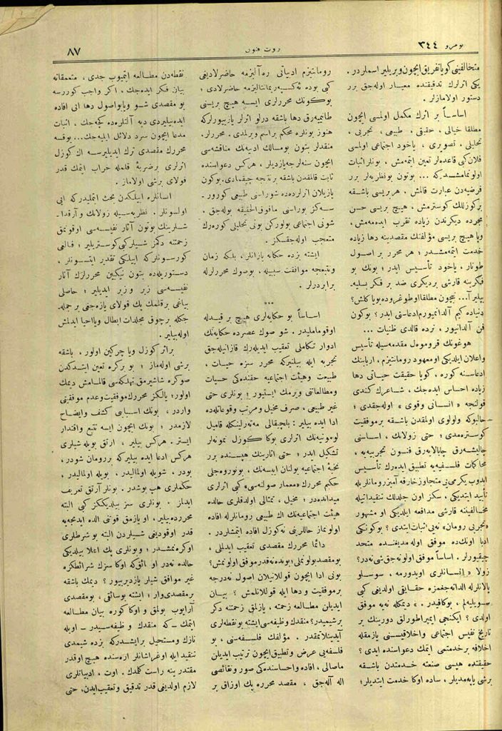 Hâlbuki bugün, henüz altı ay bile geçmeden bu şikâyeti haksız bırakacak tecelliyatın lemeanında hazır bulunuyoruz. Şairlerimiz kadar nâkillerimiz oldu. Ta evvellerden beri bu cins-i edebi bizde ihya eden biri Sergüzeşt’i diğeri Nemide’siyle adeta tesis eden Sezai ve Halit Ziya Beylerle geçen senenin fuyuz-ı edebiyesinde pek zi-medhal olan A. Nadir Bey’den sonra sırf bu senenin yetiştirdiği yeni hâkîlerimizden olmak üzere Hüseyin Cahit’in, Rüştü Necdet’in ve başka bir usulde izhar-ı temeyyüz eden Safvetî Ziya Bey’in eserleri atî için büyük bir ümid-i feyz ve terakki veriyor. Bunlardan başka şimdiye kadar isimleri her risalede görülmüş muhtelif değerli birkaç eser yazmış bazı hikâye-nüvislerimiz daha var.