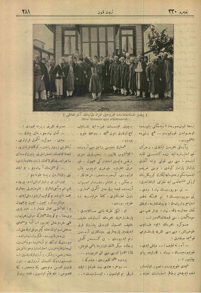Bir Yâd Yazan: Safveti [Safveti Ziya] Kategoriler: Edebiyat Alt Kategoriler: Hikâye/Telif Kurmaca Anahtar Kelimeler: -Hikâye Parçası- Mirgün [Emirgân] – 15 Haziran sene 313 – Yıldız Hastanesi’nde Mecruhin-i Guzat-ı Osmaniyenin Asar-ı Neşatı Yazan: Servet-i Fünûn Kategoriler: Görsellik/Güncel Haber Alt Kategoriler: Fotoğraf/İstanbul'dan Haber Anahtar Kelimeler: Gazi/Türk-Yunan Savaşı/Yıldız Hastanesi [İmza: Diran Çırakyan]